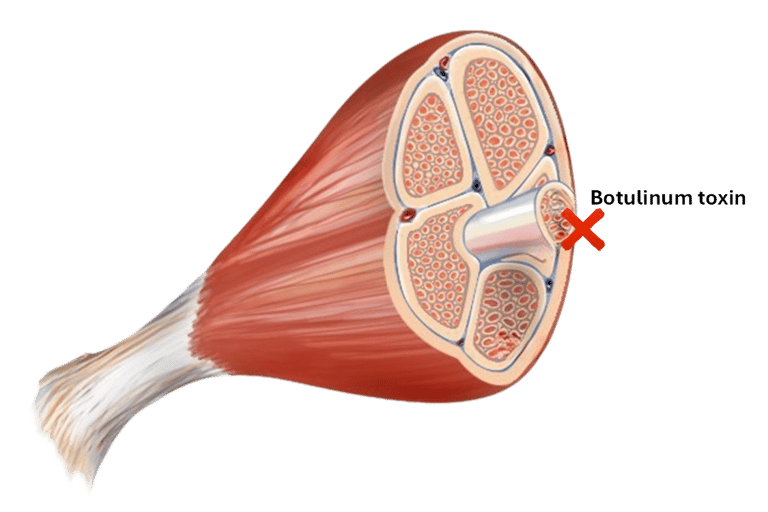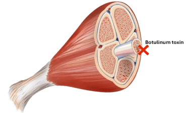Botulinum toxin prevents contraction of muscles that compress nerves