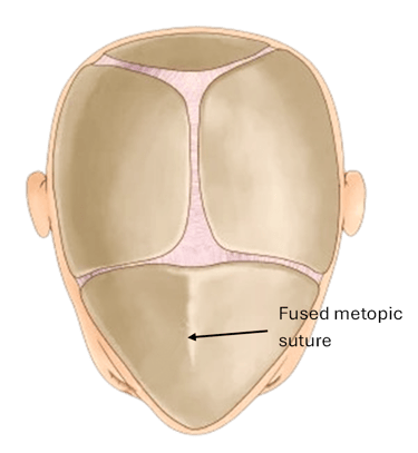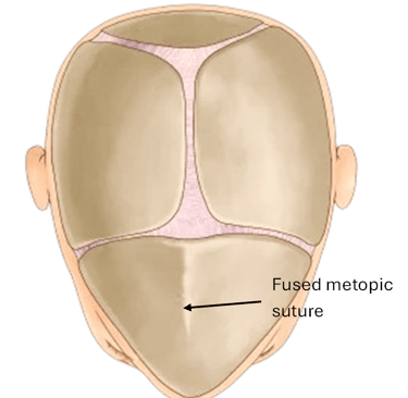 Early closure of the metopic suture leads to a narrow, pointy forehead