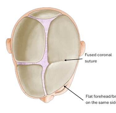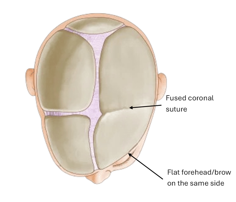 Early closure of the coronal suture leads to an asymmetric forehead