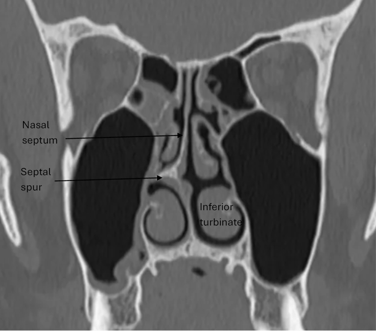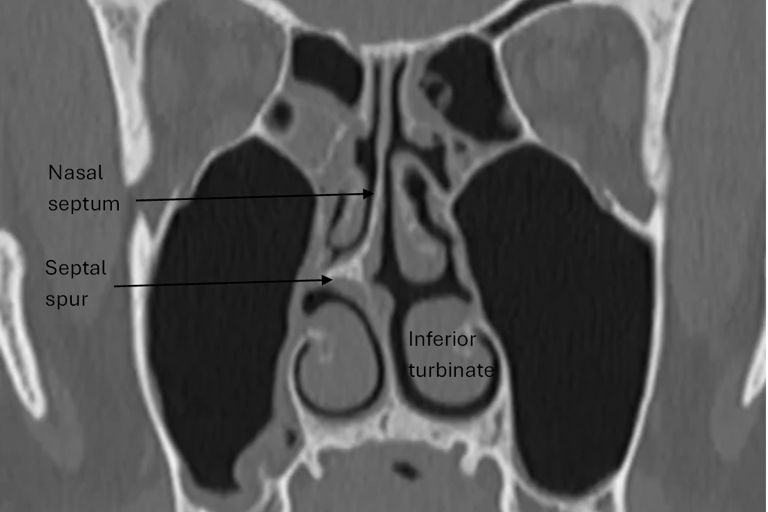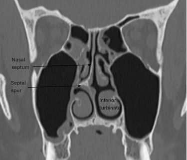 Nerves in the nasal mucosa are compressed due to a deviated septum, septal spur or enlarged inferior turbinate